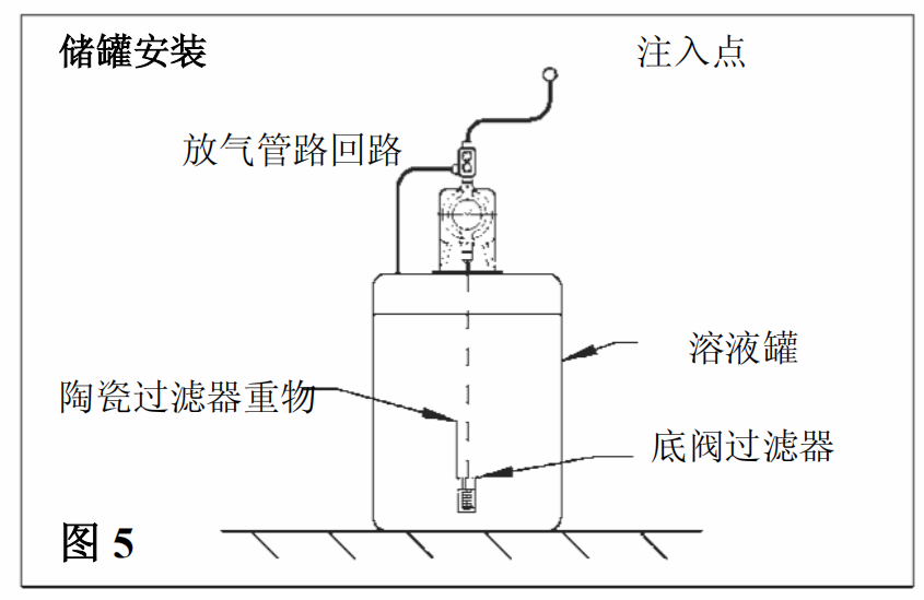 器。化学药品储罐和底阀/过滤器应定期清洗,确保连续安全运行。如果溶液中周期性地沉淀出正在泵送的化学药品,或者化学药品难以溶解或不能完全溶解(如氢氧化钙),则应在化学药品储罐中使用混合器。这些