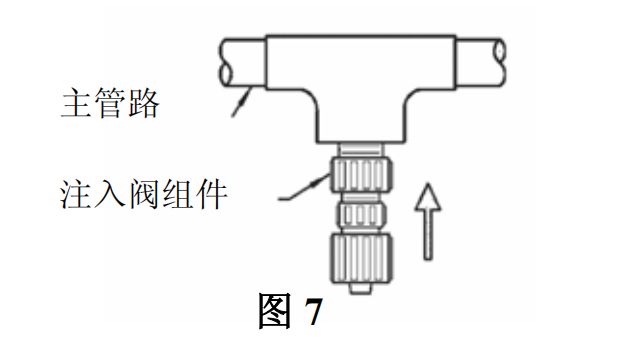 如果注入点的稀释不是很快进行,则会导致管道腐蚀。这个问题很容易避免,只要遵守下面这一简单规则:安装注入接头,使其端部伸入涉及管路的液流中央。根据需要修整注入器顶端。见图 6。注:可提供适用于
