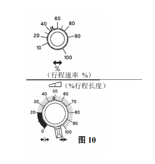 通过行程速率调节旋钮可以设置行程频率,即使泵正在运行中。(见图 10)